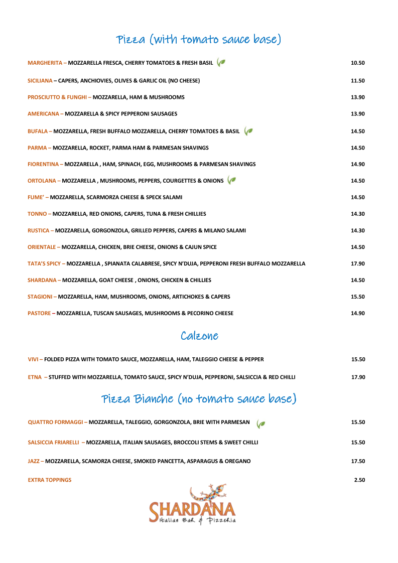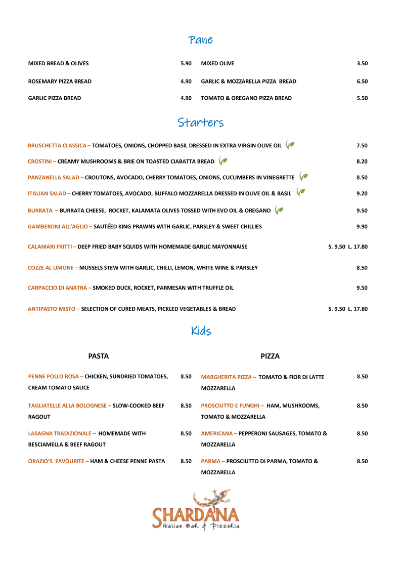 The Shardana Restaurant menu is a celebration of Italy’s rich gastronomic heritage, focusing on fresh, locally sourced ingredients and traditional techniques. Starters such as the Caprese Salad and Fritto Misto set the tone, with the fresh mozzarella and tomatoes offering a burst of flavor, while the fritto misto delivers the perfect balance of crispiness and tenderness. For mains, the Seafood Risotto stands out, with its creamy texture and perfectly cooked seafood, offering a tantalizing taste of the Mediterranean. The Tagliatelle with Wild Boar Ragu is a hearty favorite, where the rich, gamey flavors of the wild boar marry beautifully with the fresh pasta, making it an unforgettable dish.